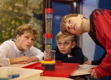 I Økolariets vandlaboratorium laver eleverne efterligninger af den helt naturlige rensning, der sker ved nedsivning gennem jord, sand og grus, mens de øvrige aktiviteter foregår i udstillingerne.